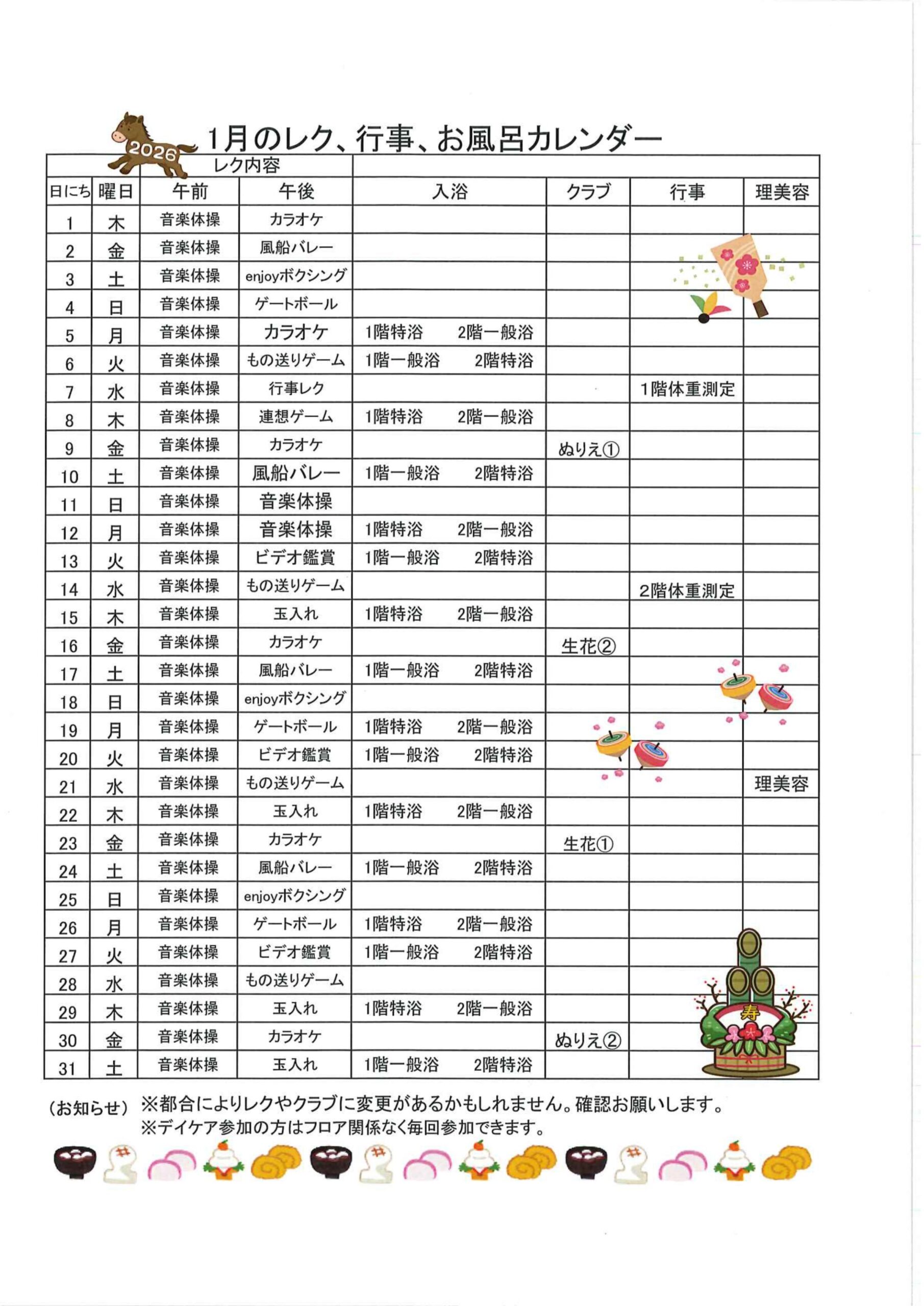 入浴の曜日の変更について